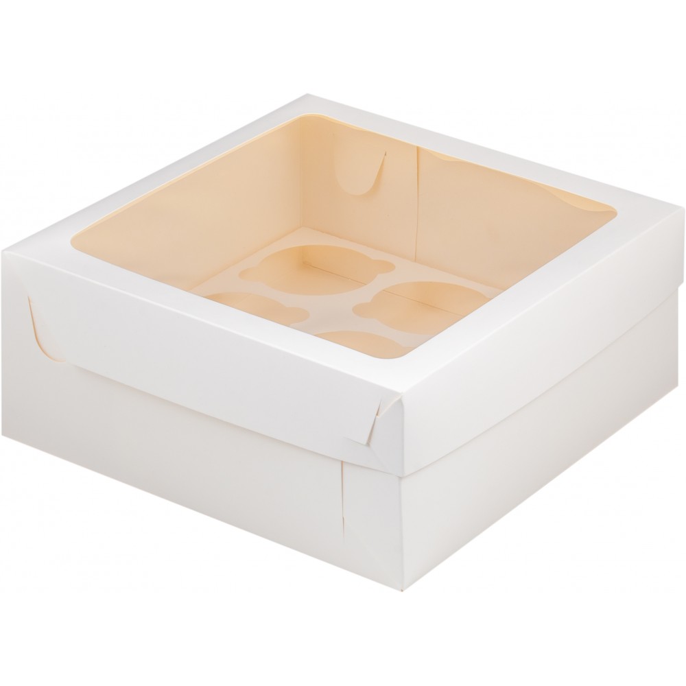 Коробка 235*235*100 мм под 9 капкейков БЕЛАЯ с прямоугольным окошком.
