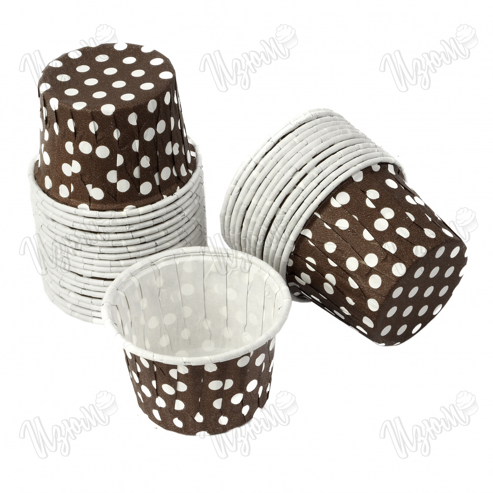 Бумажные формы для маффинов 50*40 мм, коричныевый фон, белый горох, усиленные, 10 шт.
