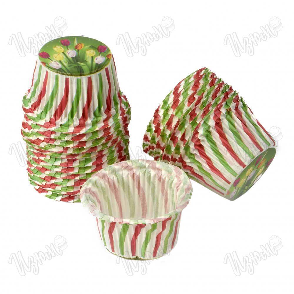 Форма бумажная Маффин 50*36 мм, фантазия, тюльпаны, 10 шт.
