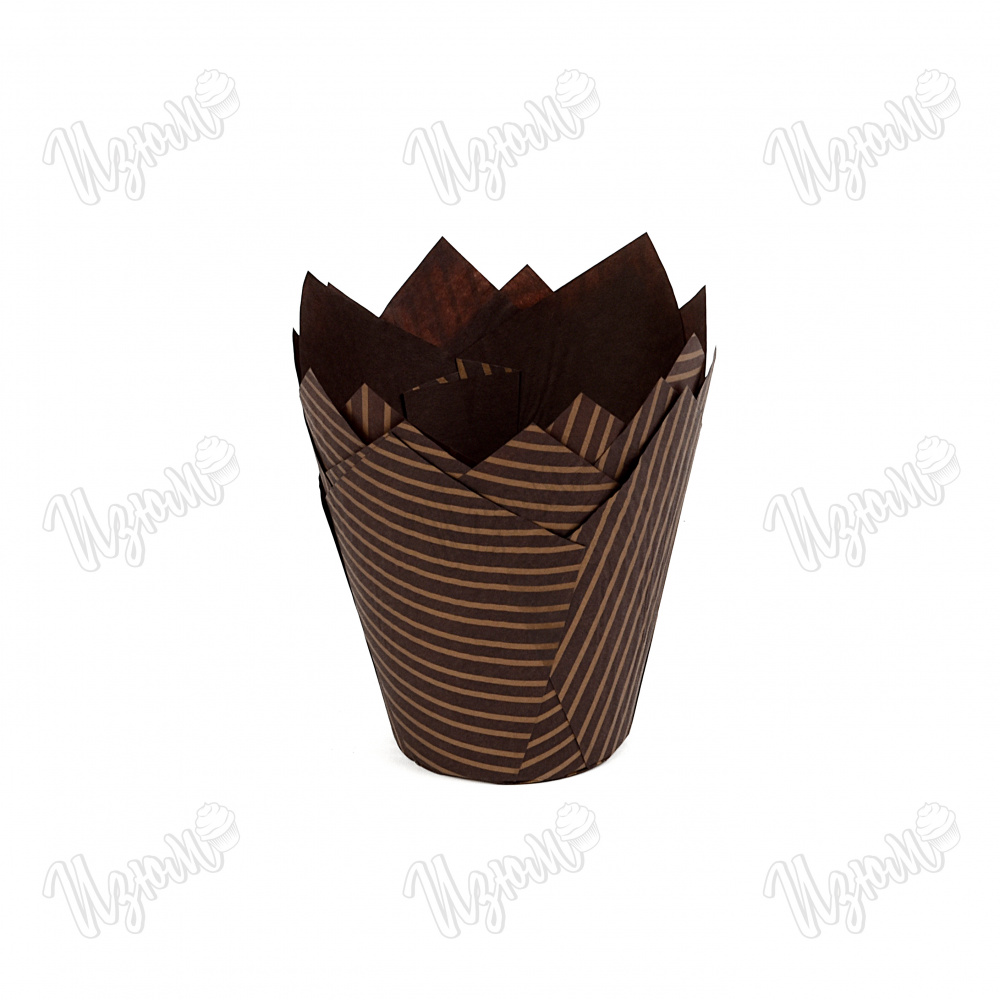 Форма бумажная "Тюльпан", 5*8 см, (коричневые с золотой линией), 10 шт
