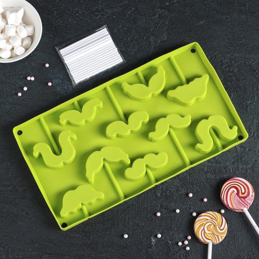 Форма для леденцов и мороженого, 10 ячеек, 28,5х16х2 см "Усы" с палочками.
