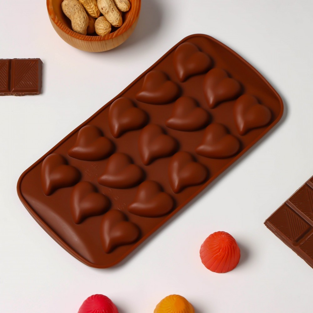 Форма для шоколада «Сердца», 21,5×10,5×1,8 см, 15 ячеек, цвет шоколадный