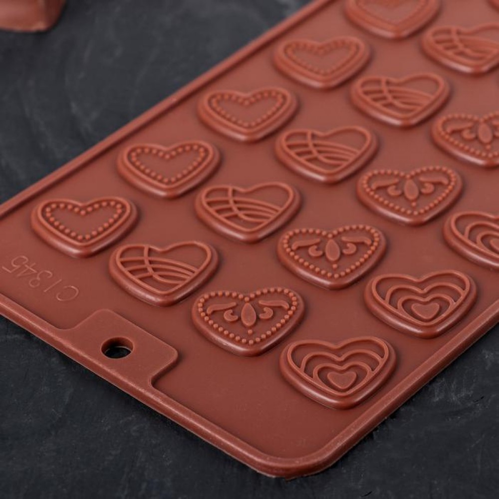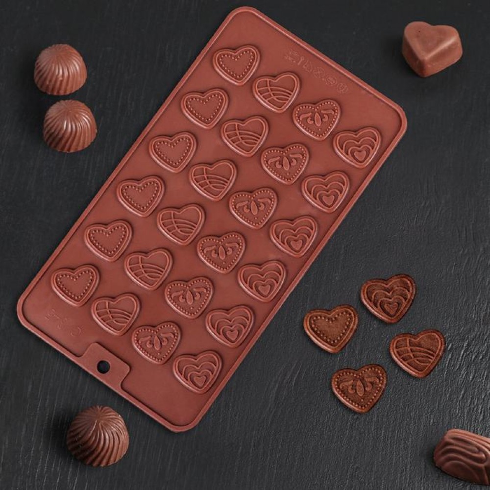Форма для шоколада «Сердечки», 21×11 см, 24 ячейки, цвет шоколадный