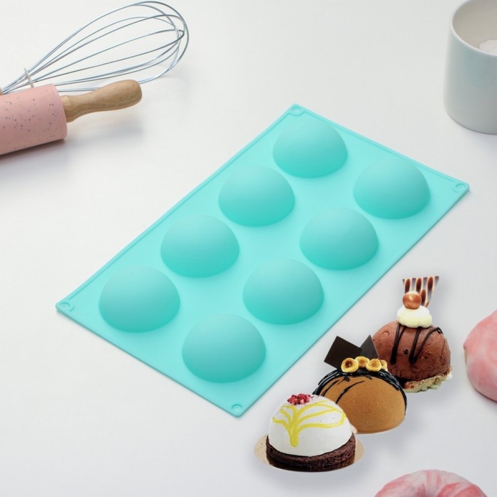 Форма силиконовая «Полусферы» 28×16,2×2,5см (d=5,4 см), 8 ячеек, цвет мятный (9784613)