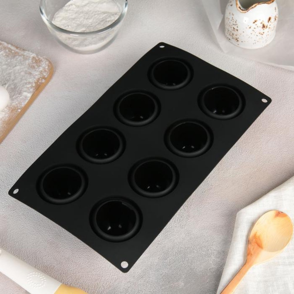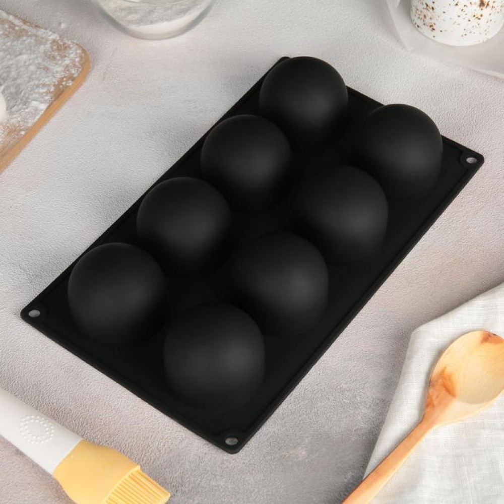 Форма силиконовая «Шары», 29,8×17,5 см, 8 ячеек (6×6×3 см), цвет чёрный.