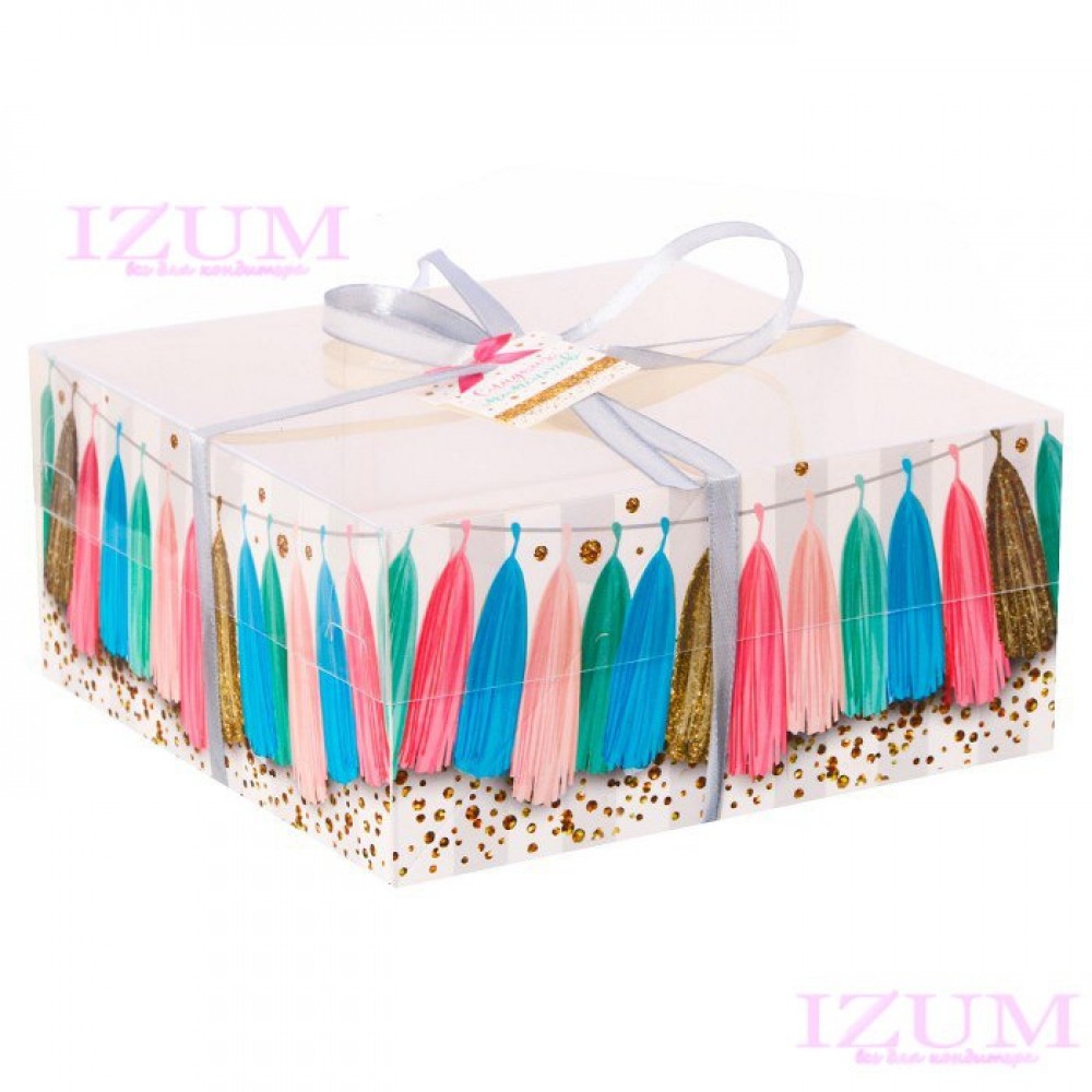 Коробка для 4 капкейков, маффинов "Праздник"16*16*7,5 см.