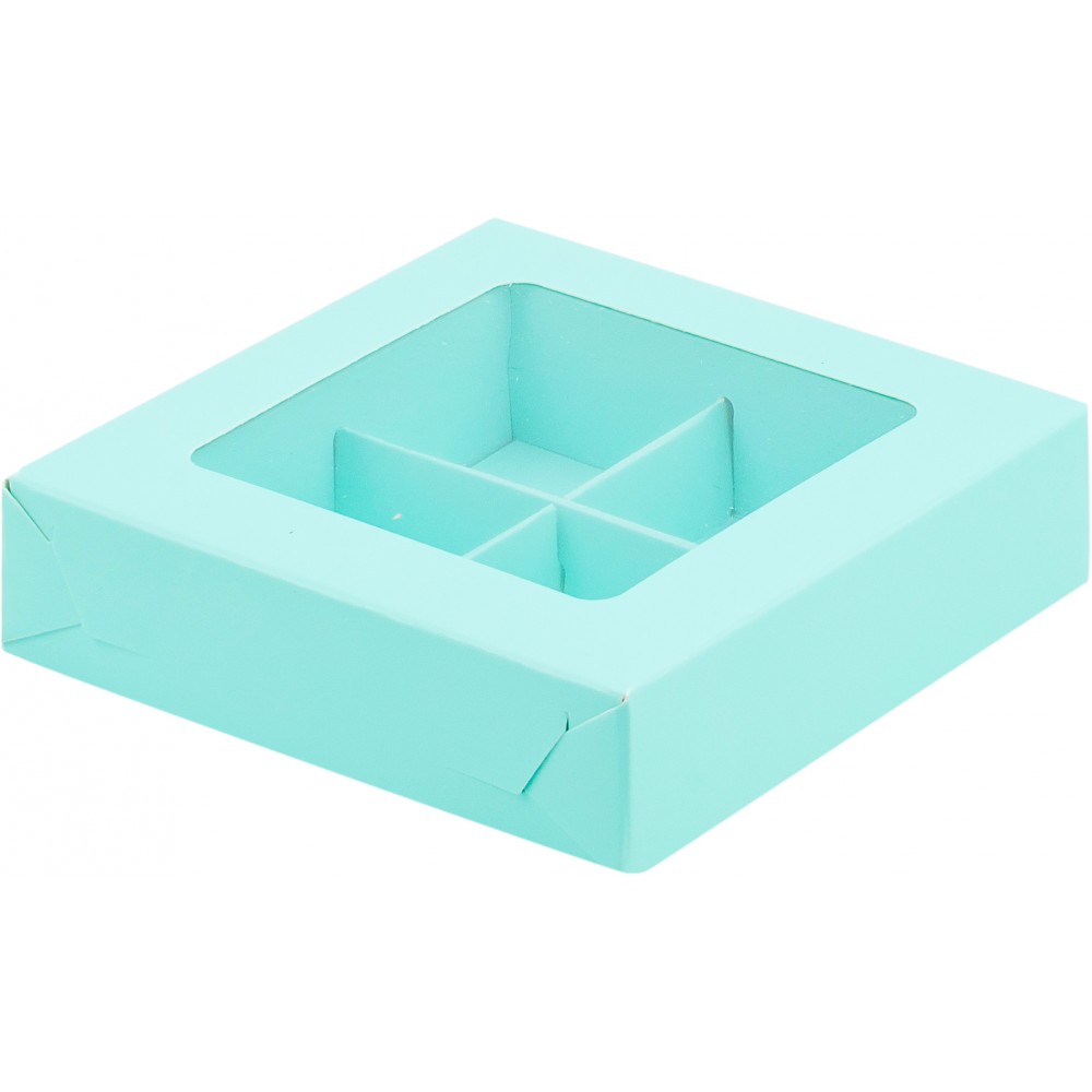 Коробка для 4 конфет 120*120*30 с вклеенным окном Тиффани, 1 шт