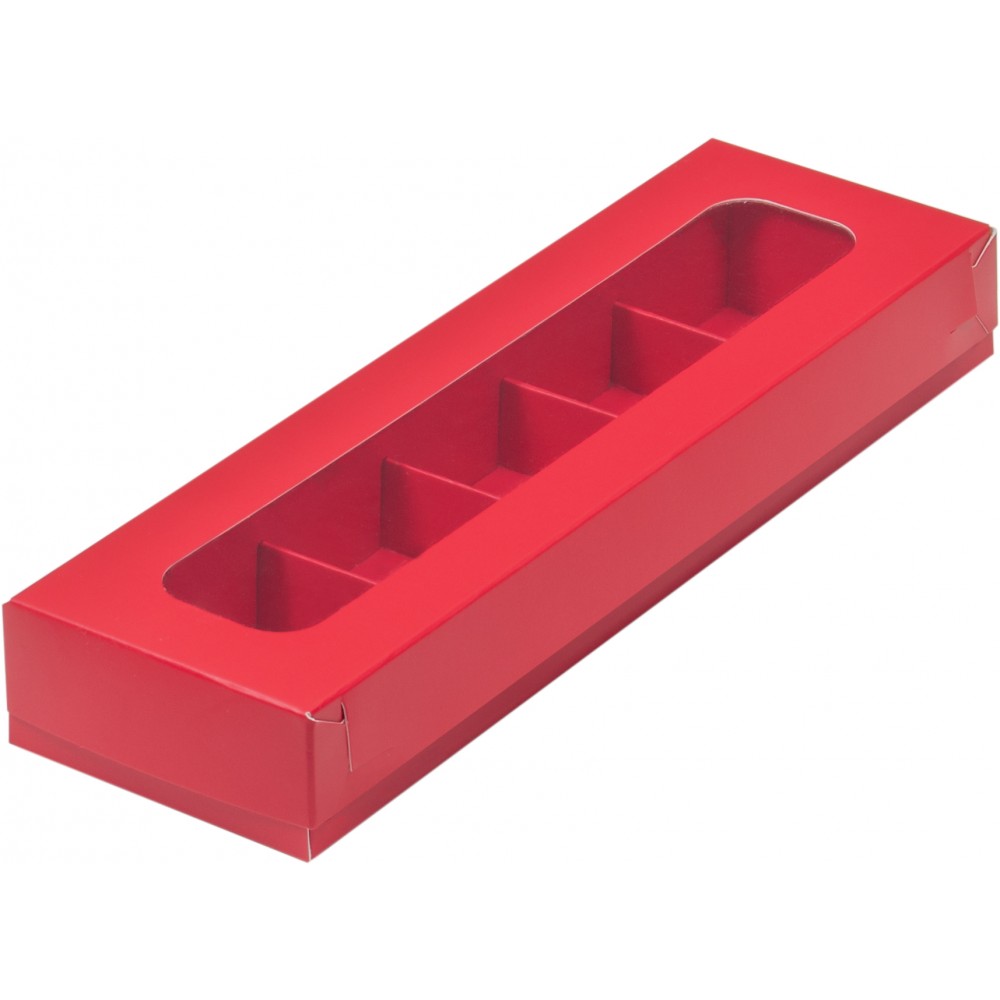 Коробка для 5 конфет 235*70*30 с вклеенным окном Красная, 1 шт