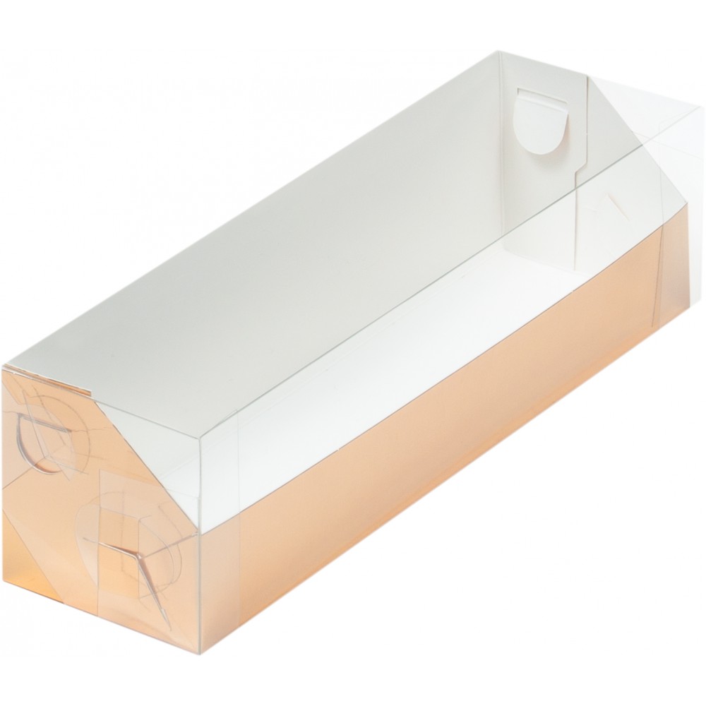 Коробка для макарон 190*55*55 мм золотая с пластиковой крышкой (уголок), 1 шт