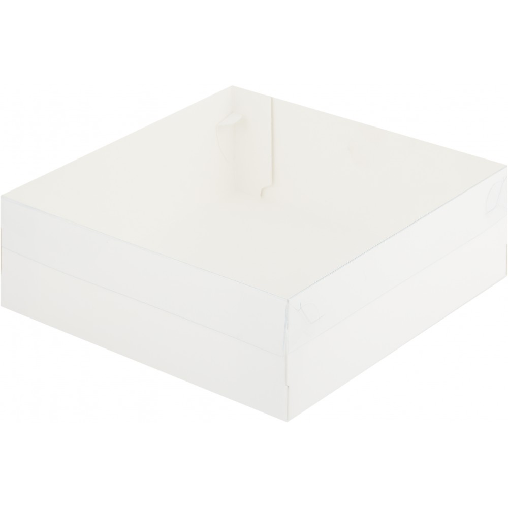 Коробка для зефира 200*200*70 мм с пластиковой крышкой, Белая, 10 шт