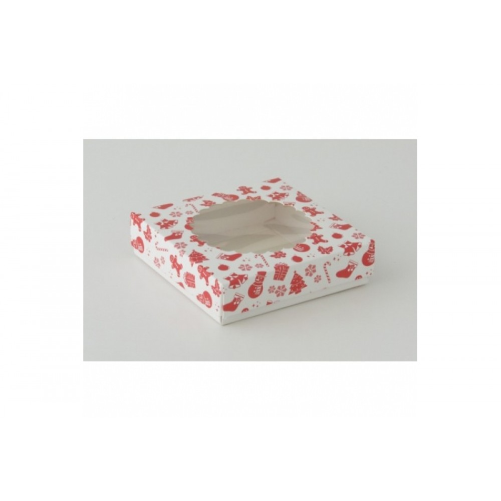 КОРОБКА на 1 печенье 11*11*3 см красно-белая новогодняя