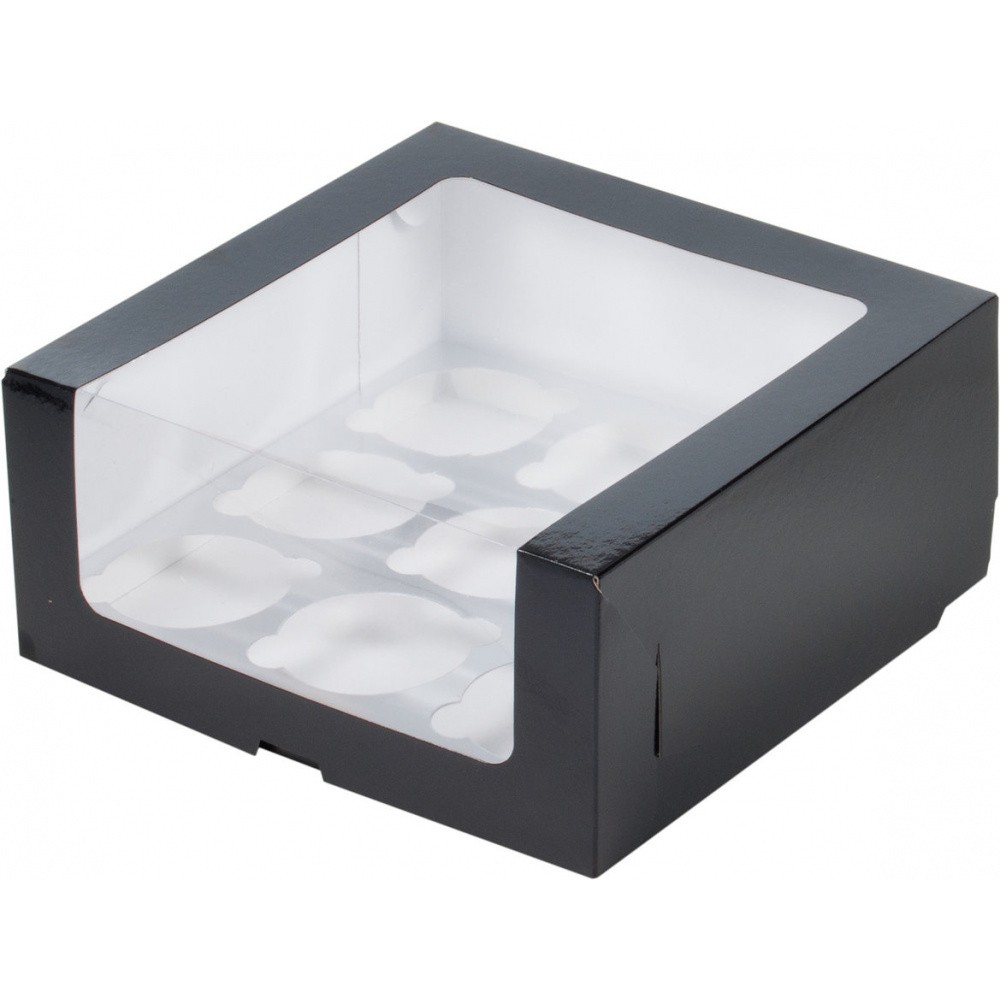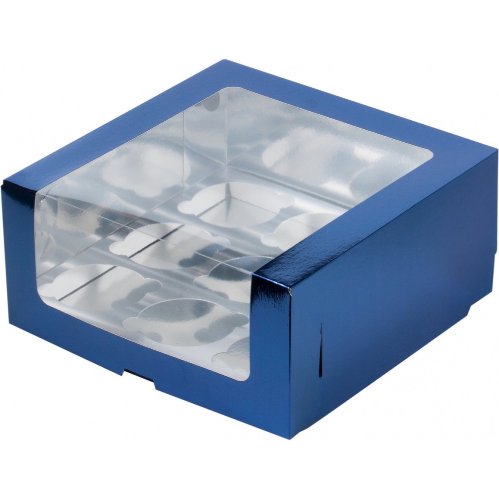 Коробка под 9 капкейков с увеличенным окошком, 235*235*110 мм., Серебряная