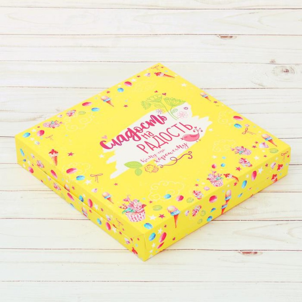 Коробочка для сладостей без окна "Сладость на радость"25*25*4,5 см.
