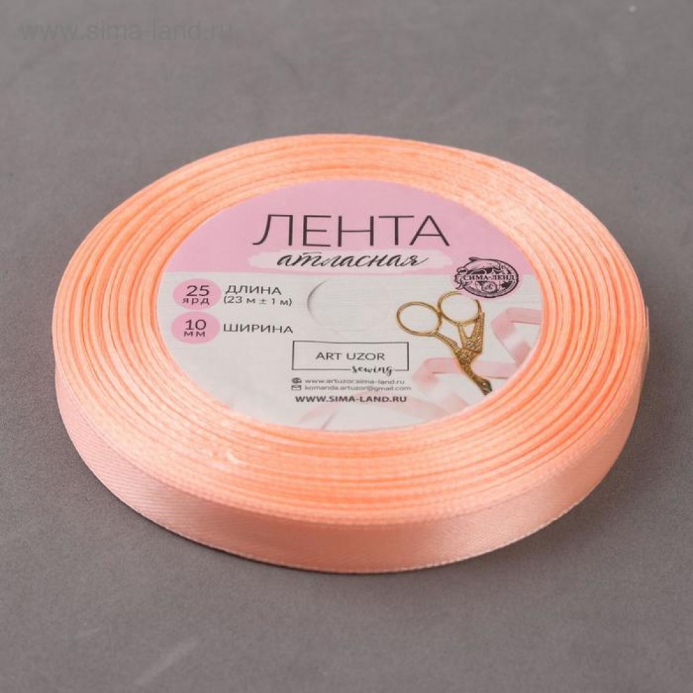 Лента атласная, 10 мм × 23 ± 1 м, цвет персиковый №127