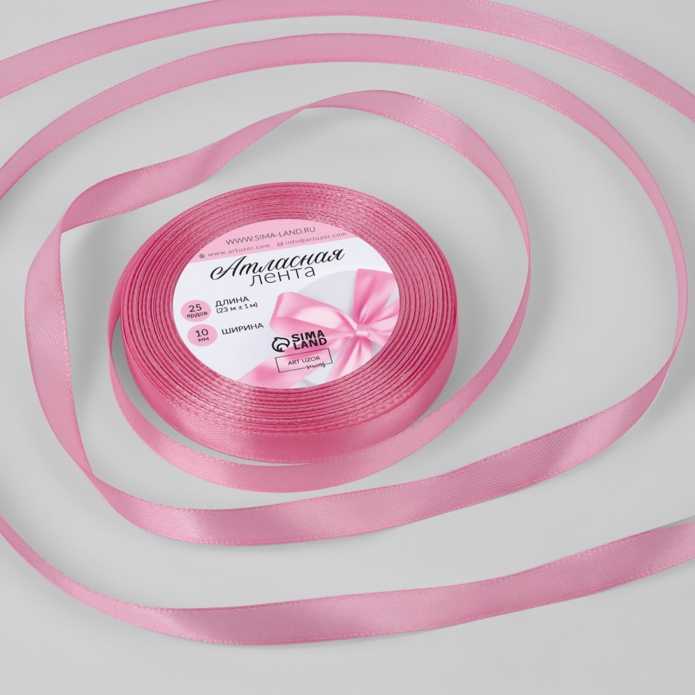 Лента атласная, 10 мм × 23 ± 1 м, цвет нежно-розовый №124