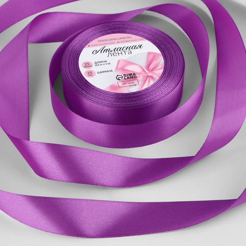 Лента атласная, 25 мм × 23 ± 1 м, цвет тёплый фиолетовый №154