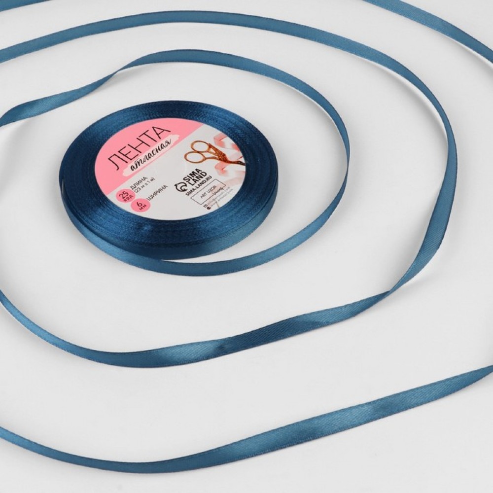 Лента атласная, 6 мм × 23 ± 1 м, цвет лазурный №36