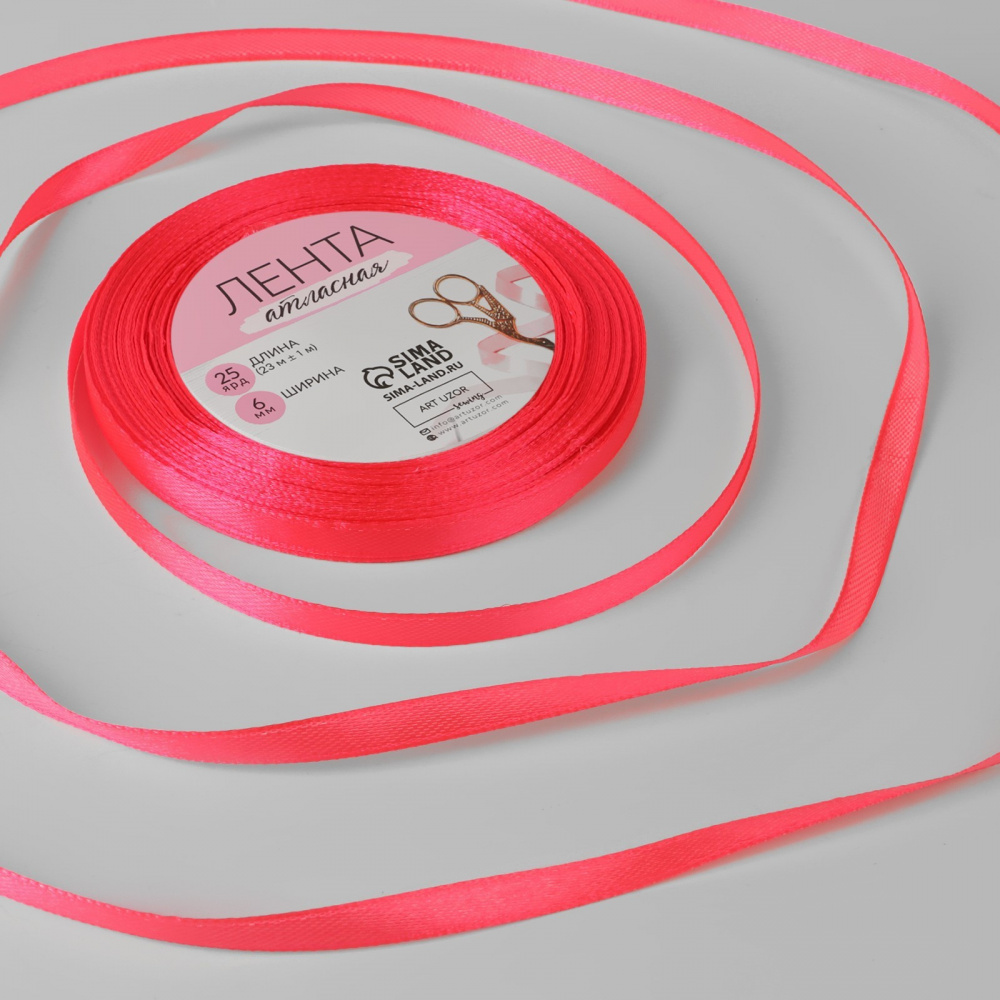 Лента атласная, 6 мм × 23 ± 1 м, цвет неоновый розовый №14