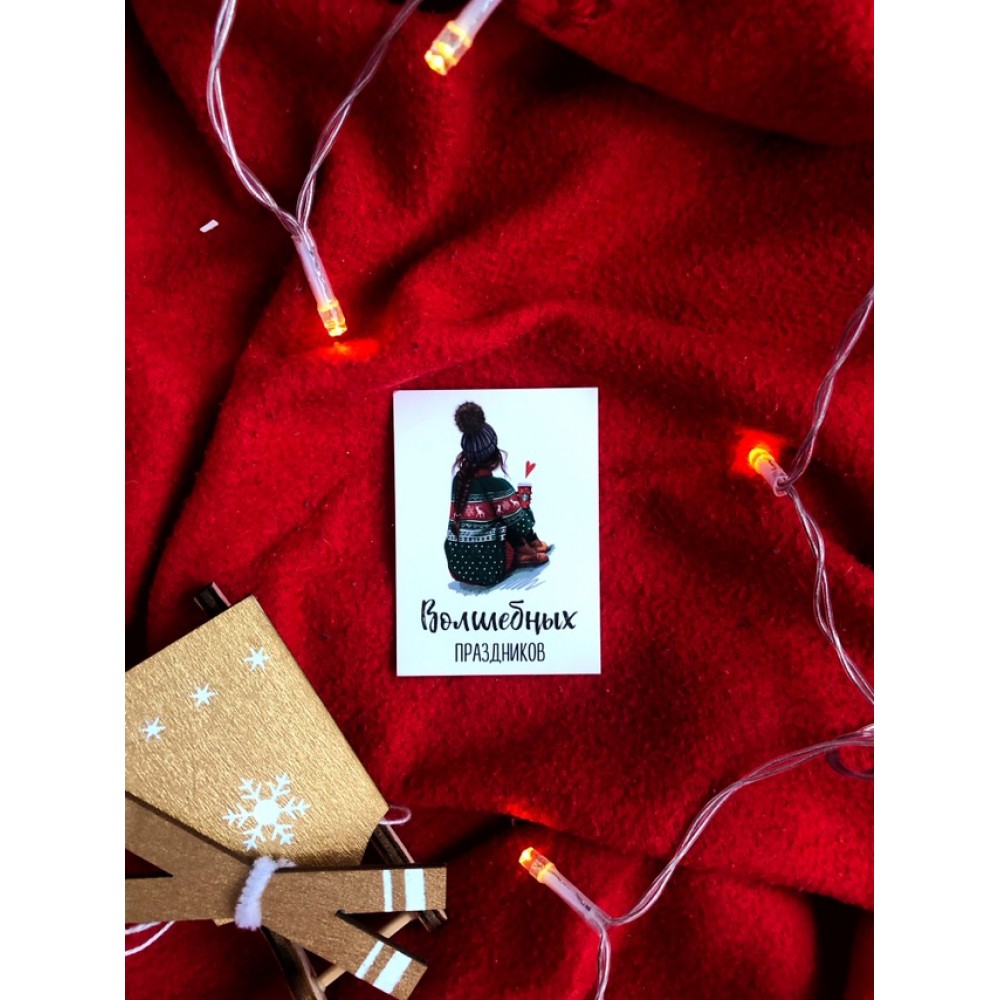 Мини открытка "Волшебных праздников" девушка 5*7 см, 1 шт