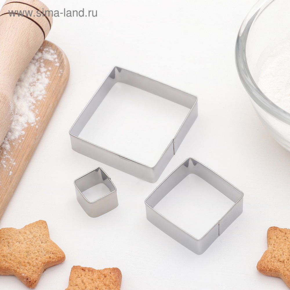 Набор форм для вырезания печенья 7,5х1,5 см "Квадрат", 3 шт