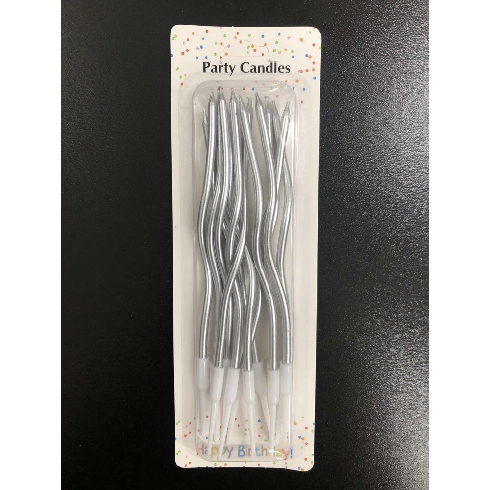 Набор свечей , витые, серебро 15,5 см с держателем (Китай, 12 шт) , 1 уп. НОВИНКА