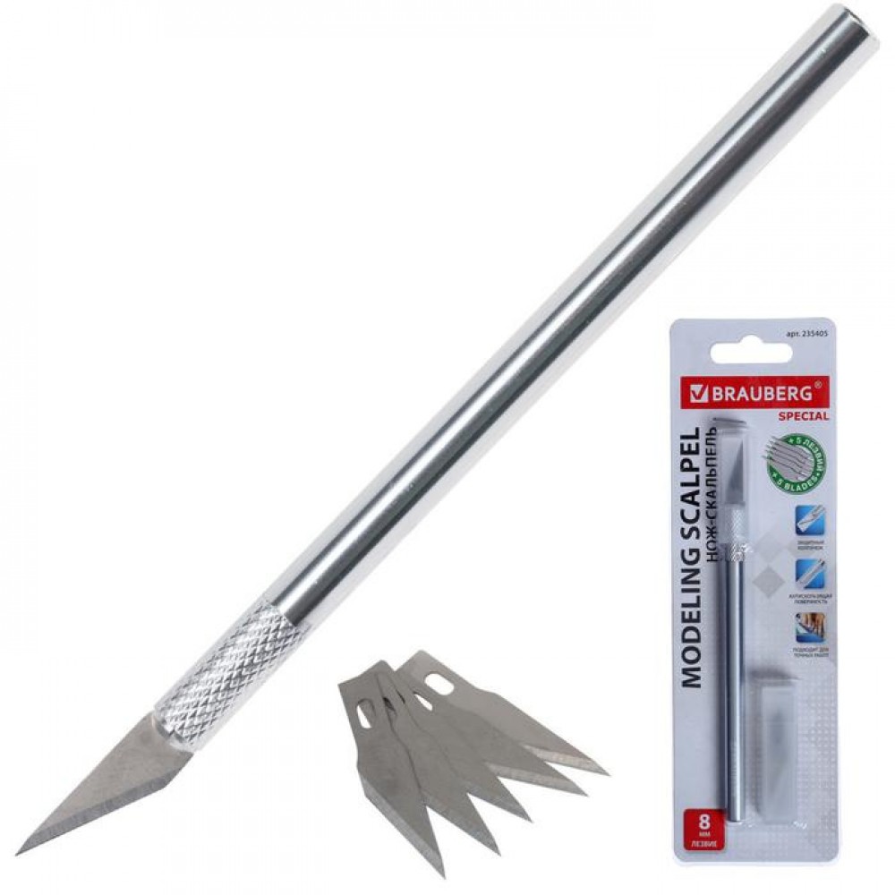 Нож-скальпель металлический корпус, + 5 запасных лезвий, блистер.