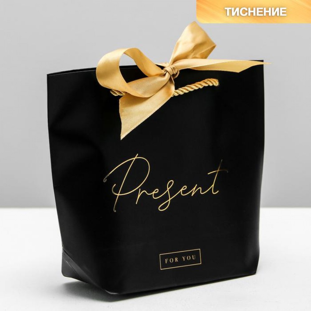 Пакет подарочный Present, чёрный 21 х 17 х 7 см