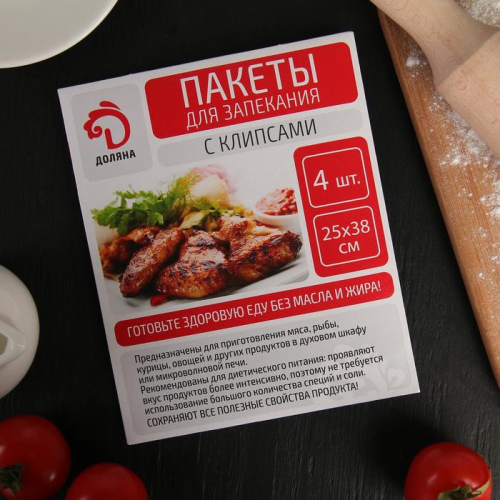 Пакеты для запекания , 25×38 см, 4 шт, с клипсами.