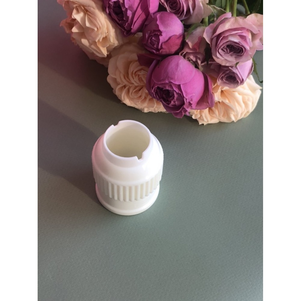 Переходник для насадок позволяет надёжно прикрепить кондитерский мешок к насадке, а так же менять кондитерские насадки не вынимая их из мешка, используя один мешок с кремом.