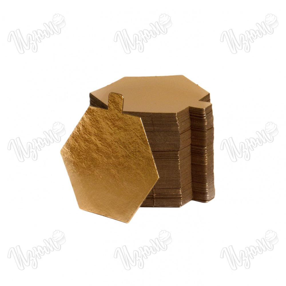 Подложка односторонняя, шестигранник с держателем, Золото (0,8 мм), 90*104 мм.