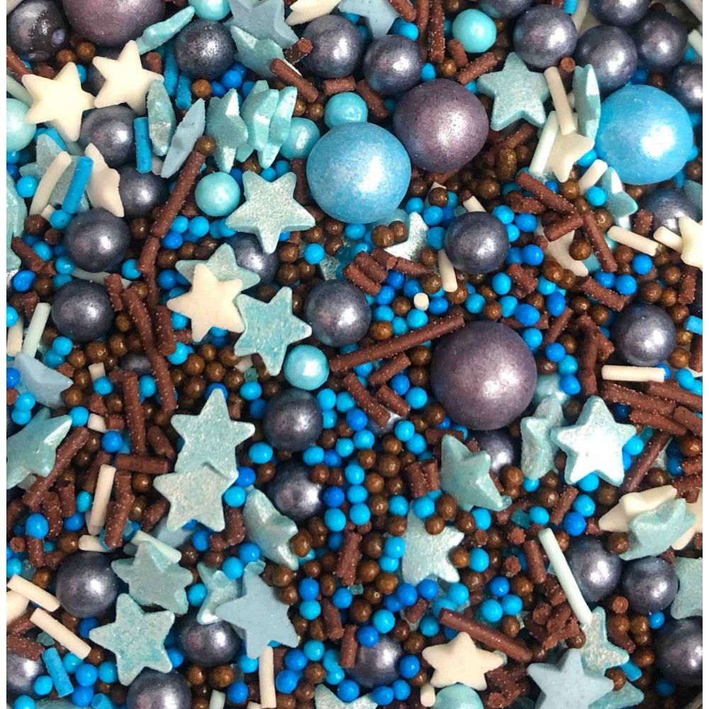 Посыпка сахарная Kira Kiss, МИКС тёмный с голубыми звёздами, 30 г.