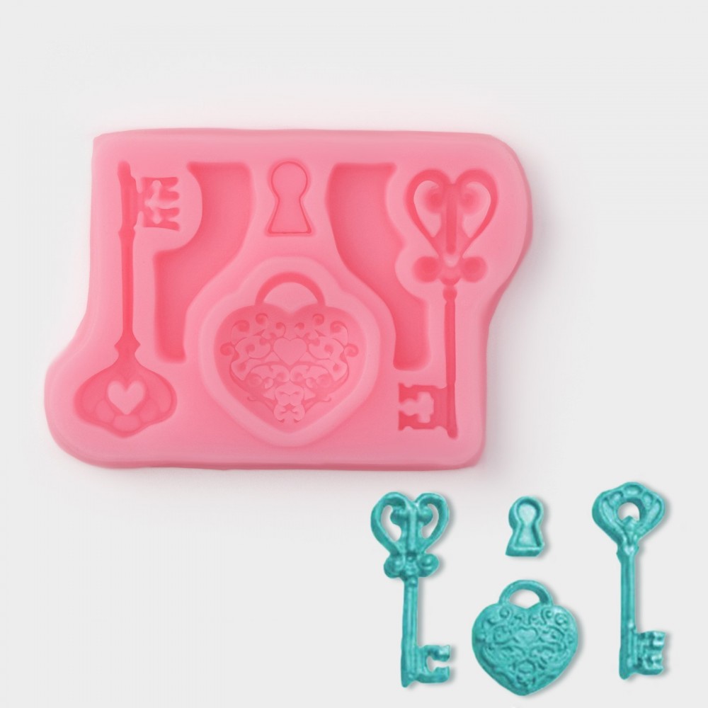 Силиконовый молд «Ключ от сердца», 8,5×6,8 см, цвет МИКС