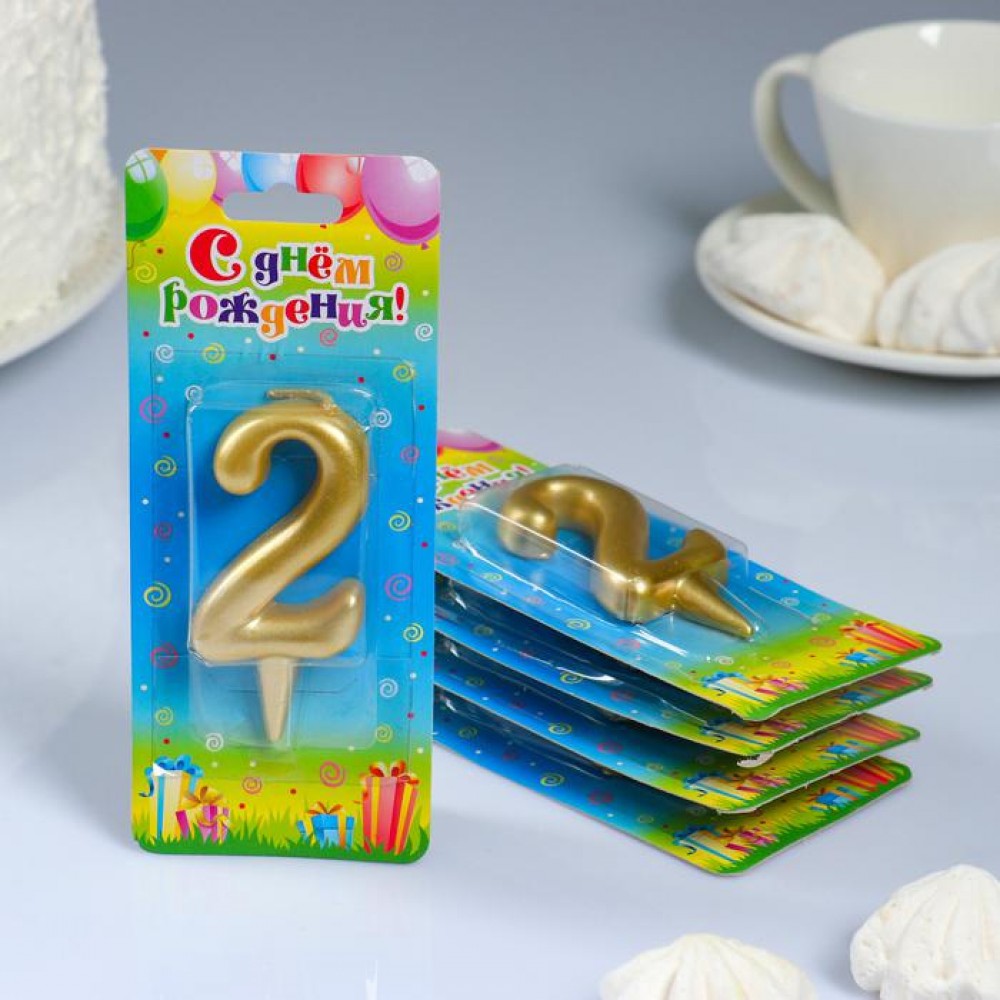 Свеча для торта цифры "Золотая 2", 1 шт