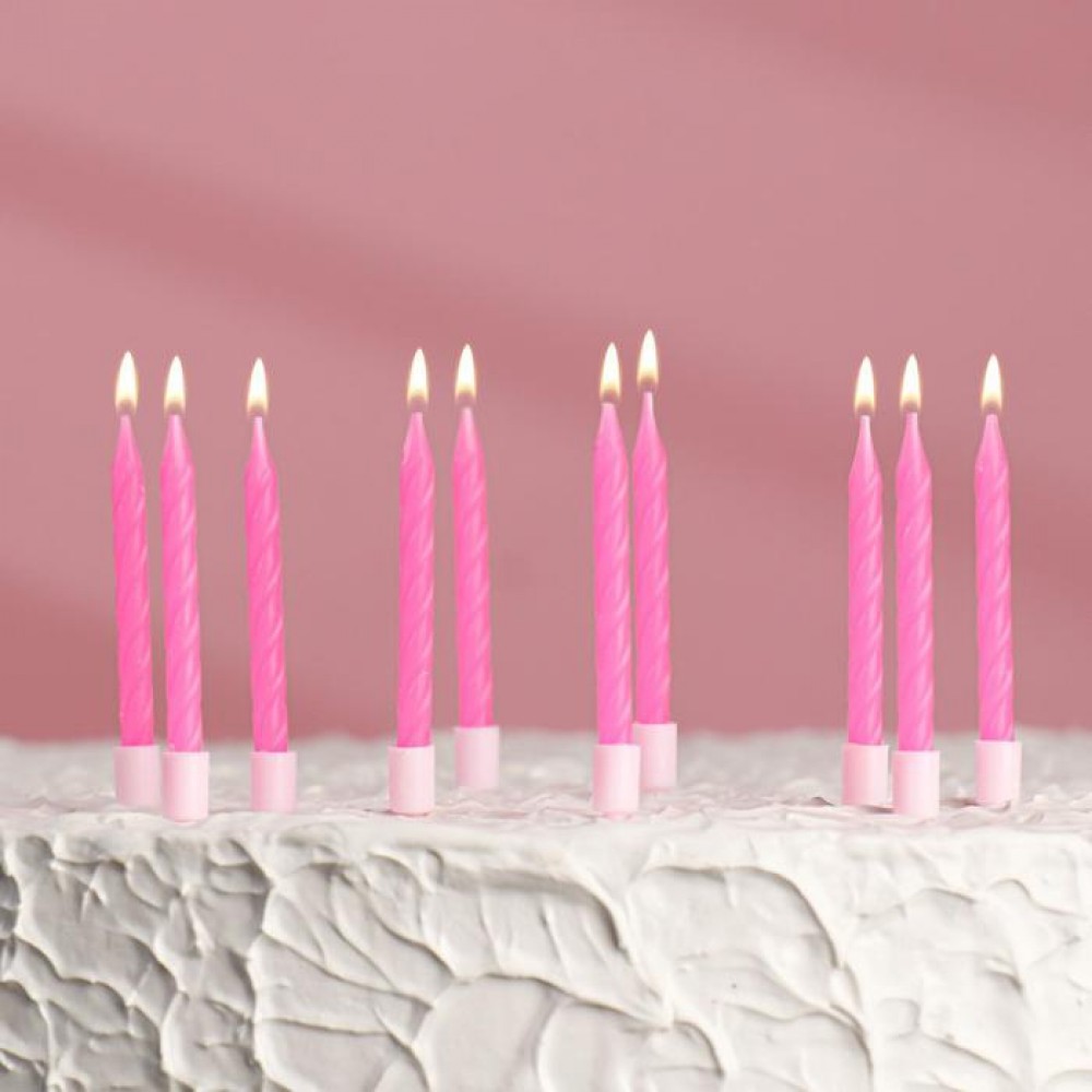 Свечи для торта "Неон", 10 шт, розовые, 7 см, 3119577