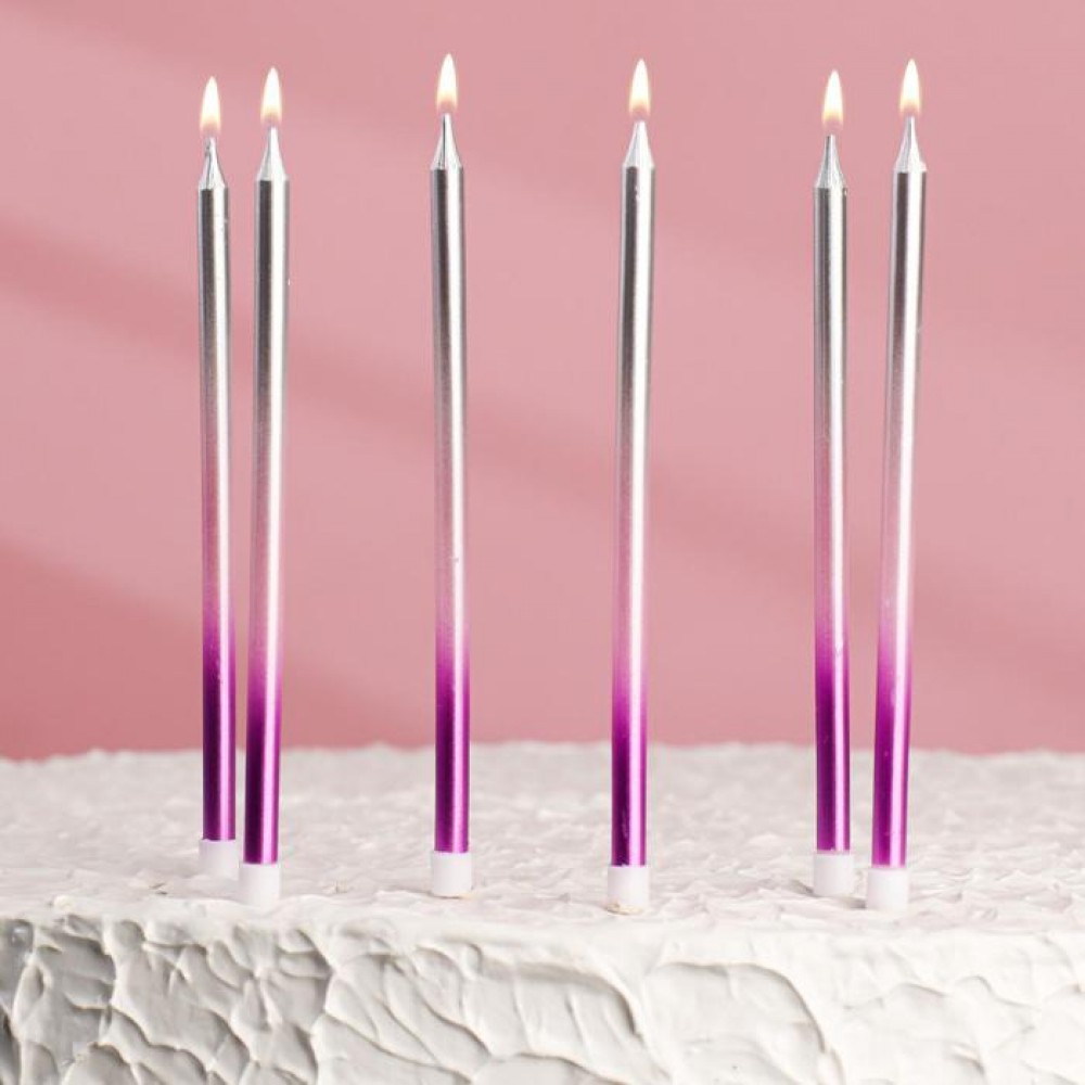 Свечи в торт "Ройс. Градиент", 6 шт, высокие, 13 см, фиолетовый, розовый, серебро