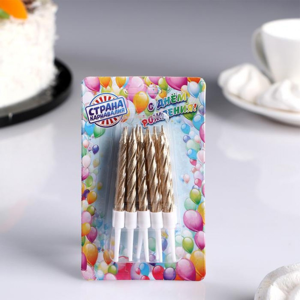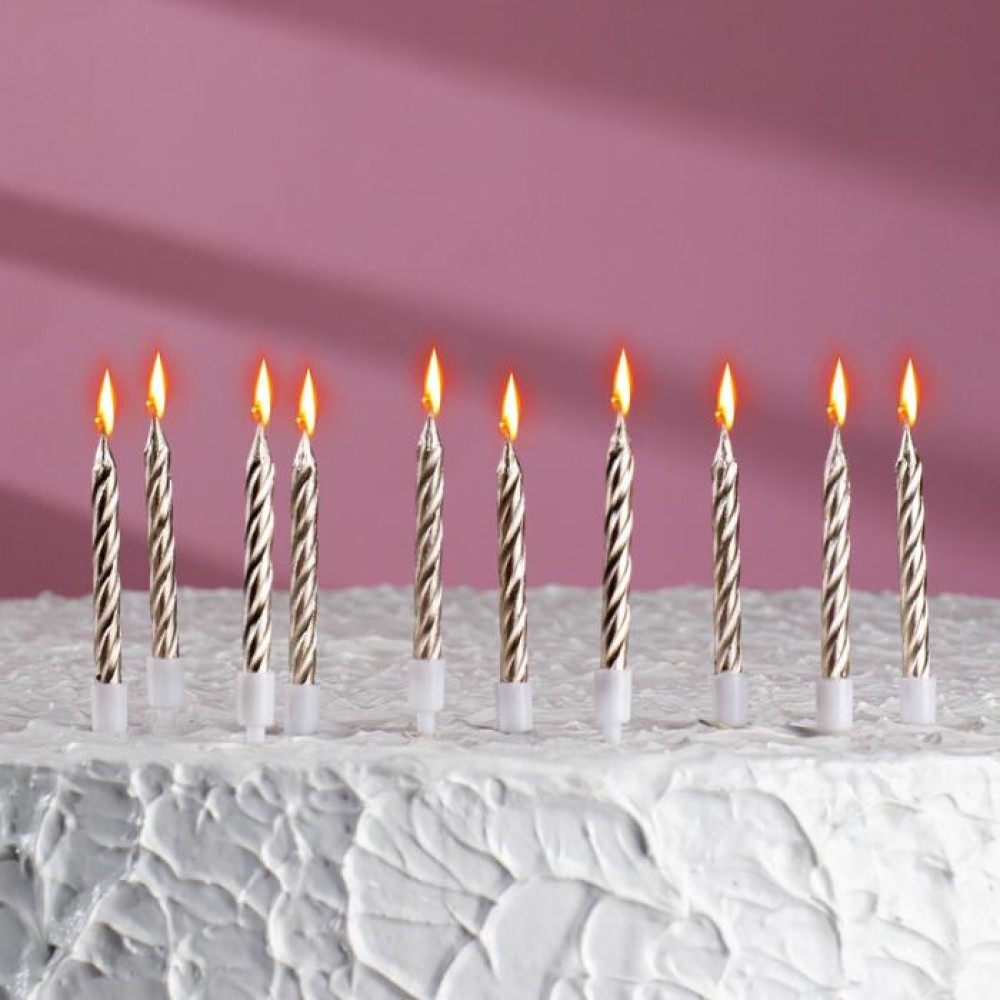 Свечи в торт "Спираль", 10 шт, средние, 5 см, металлик, 2919668.