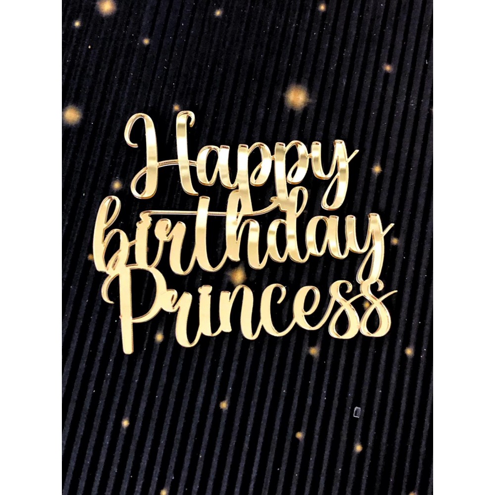 Топпер "Happy birthday Princess" 10*8 см боковой из золотого оргстекла