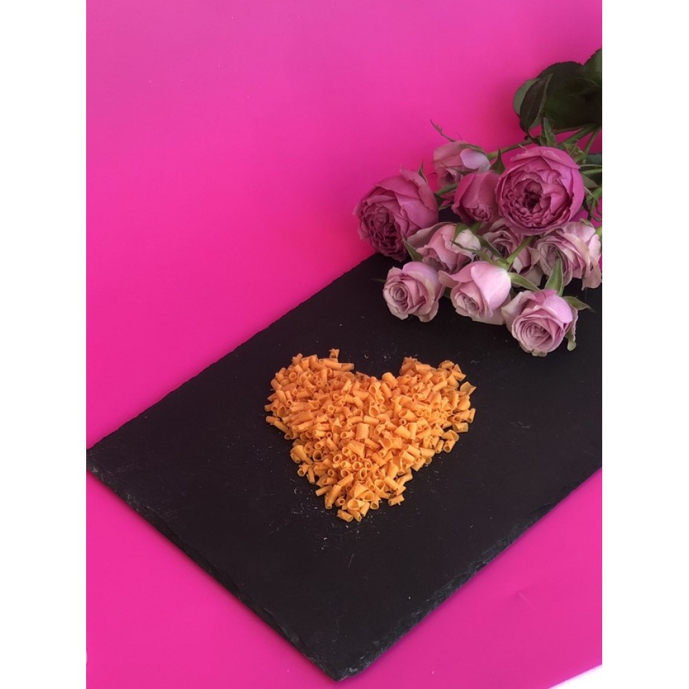 Шоколадные завитки оранжевого цвета со вкусом и ароматом белого шоколада и апельсина.