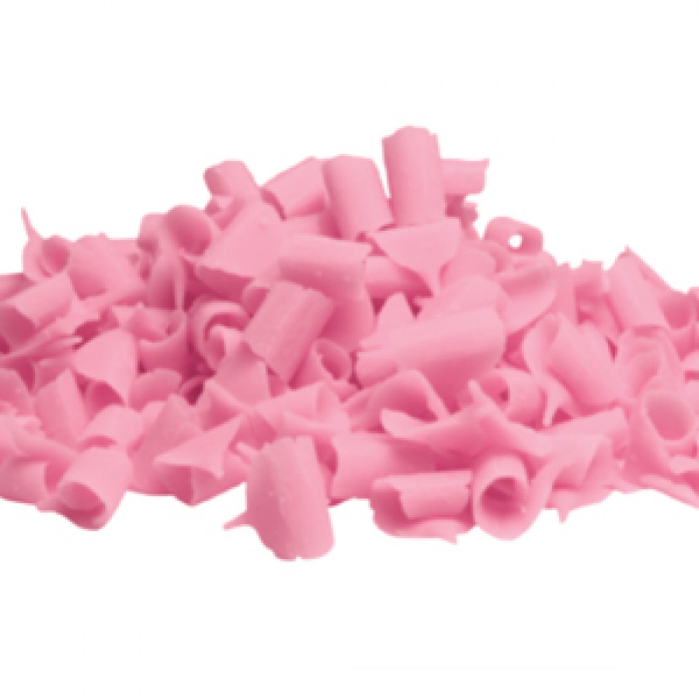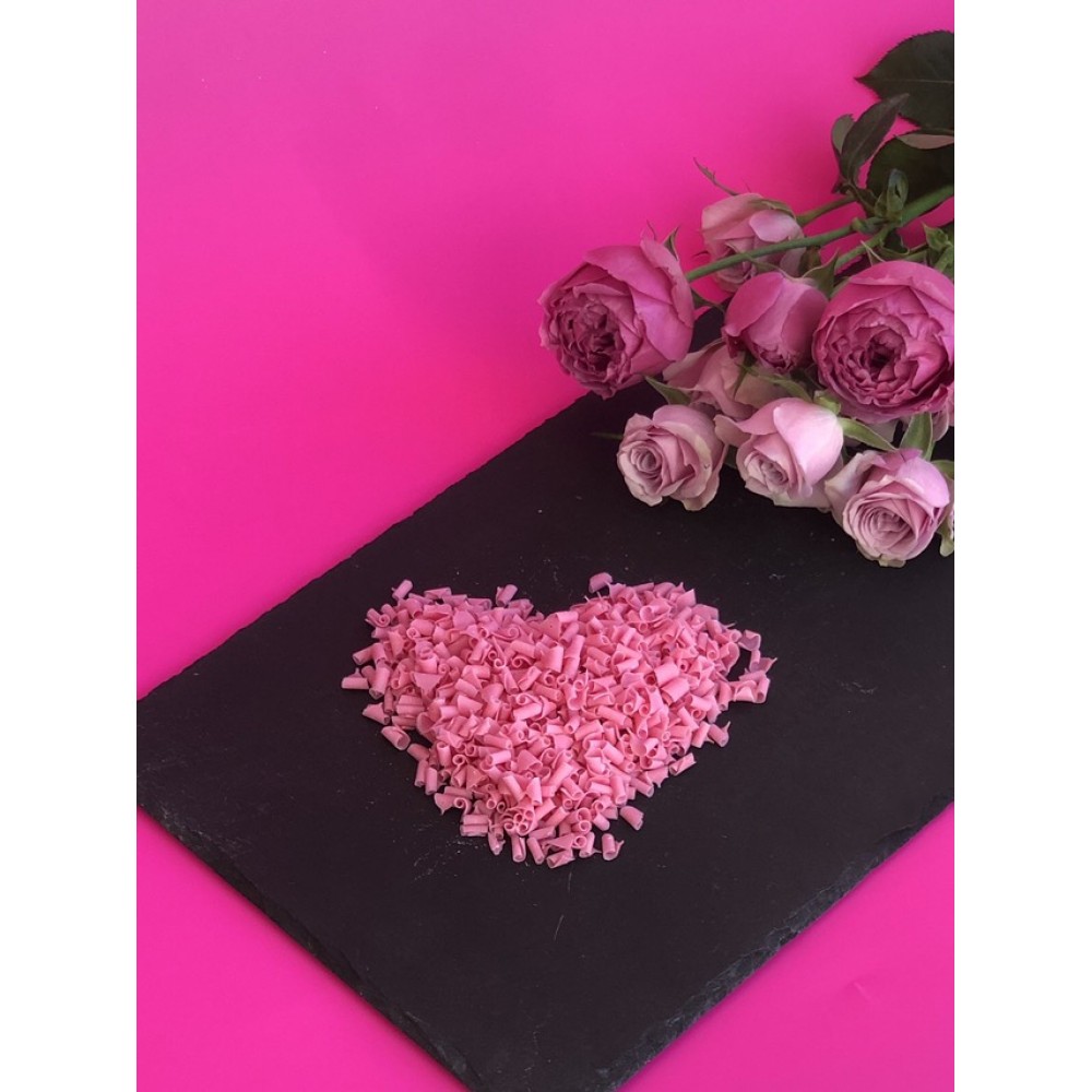 Шоколадные завитки розового цвета со вкусом и ароматом белого шоколада и малины.